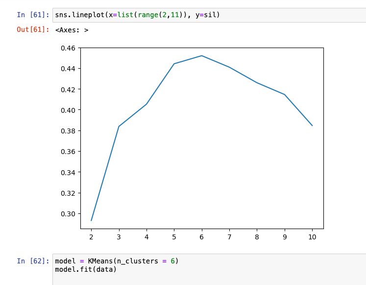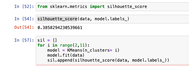 inertia 사용해보는 것인데, 윗처럼 4~6 사이에서 잘 모르겠을 때 실루엣 사용