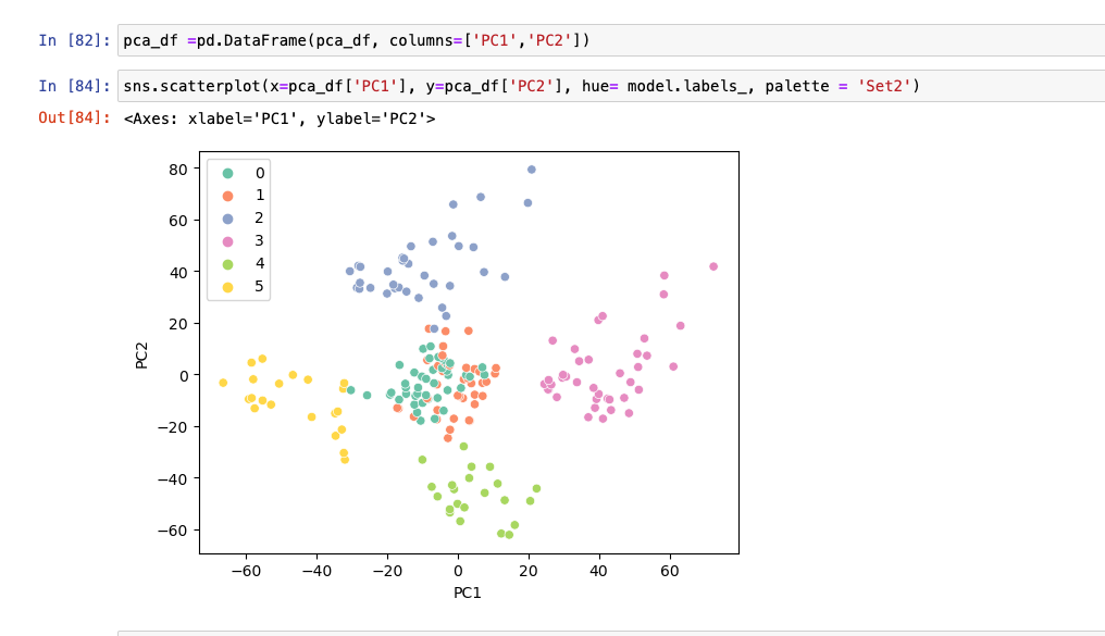 6개의 군집으로 묶었을 때 가장 효과적인 clustering 이라는것을 알 수 있음